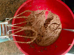 - Add in the dry ingredients and use a hand mixer to combine. The batter will be fairly thick and dense.