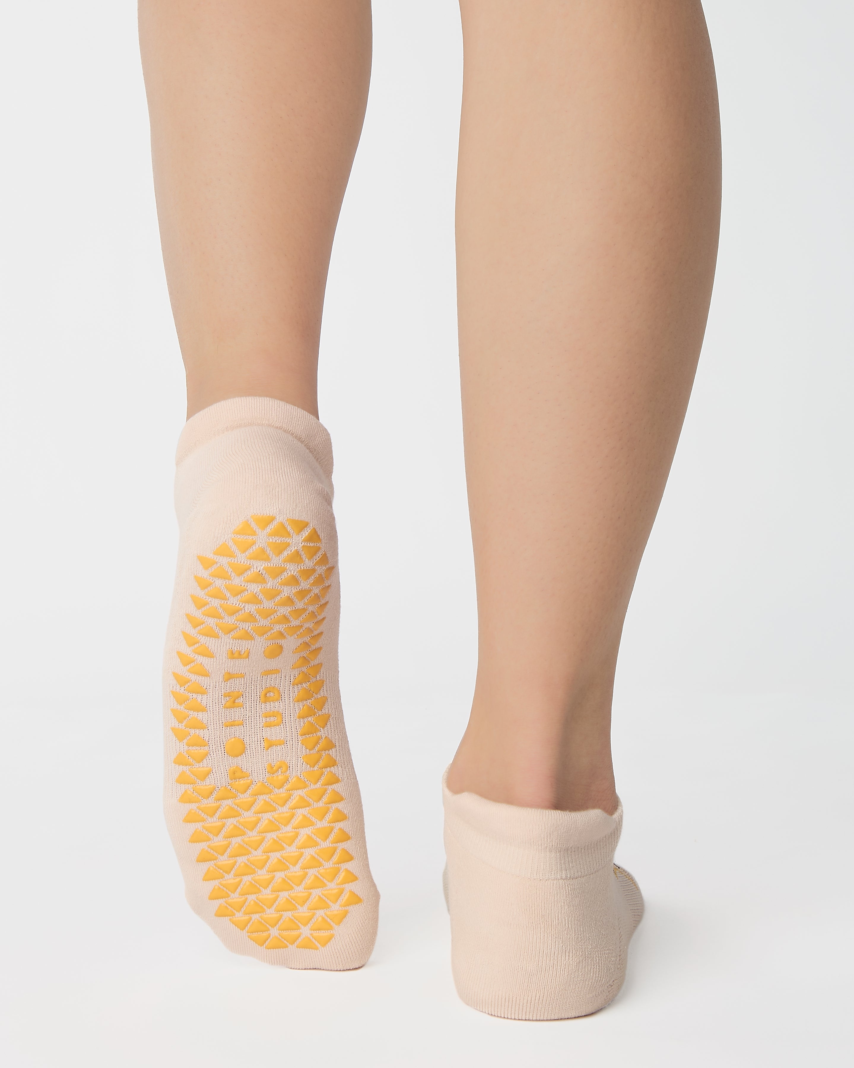 All grip, no slip in our higher coverage ankle socks. Grip socks perfect for sticking your workout.