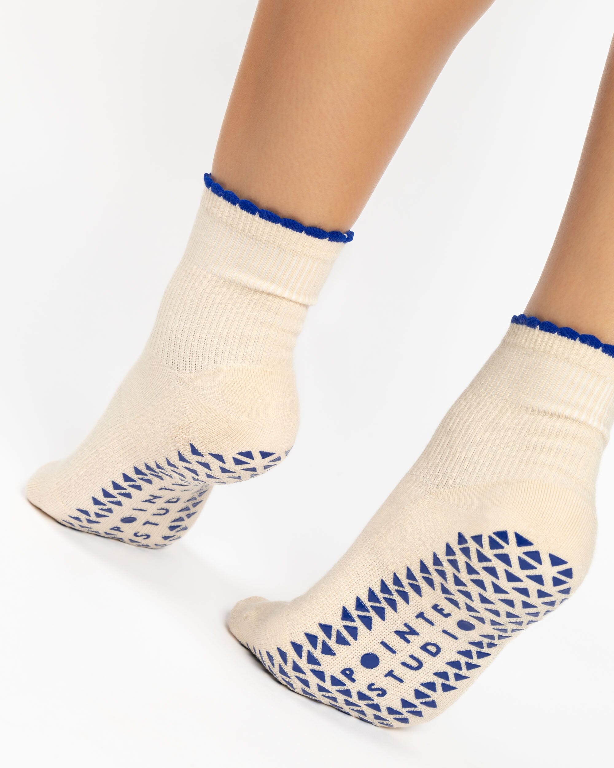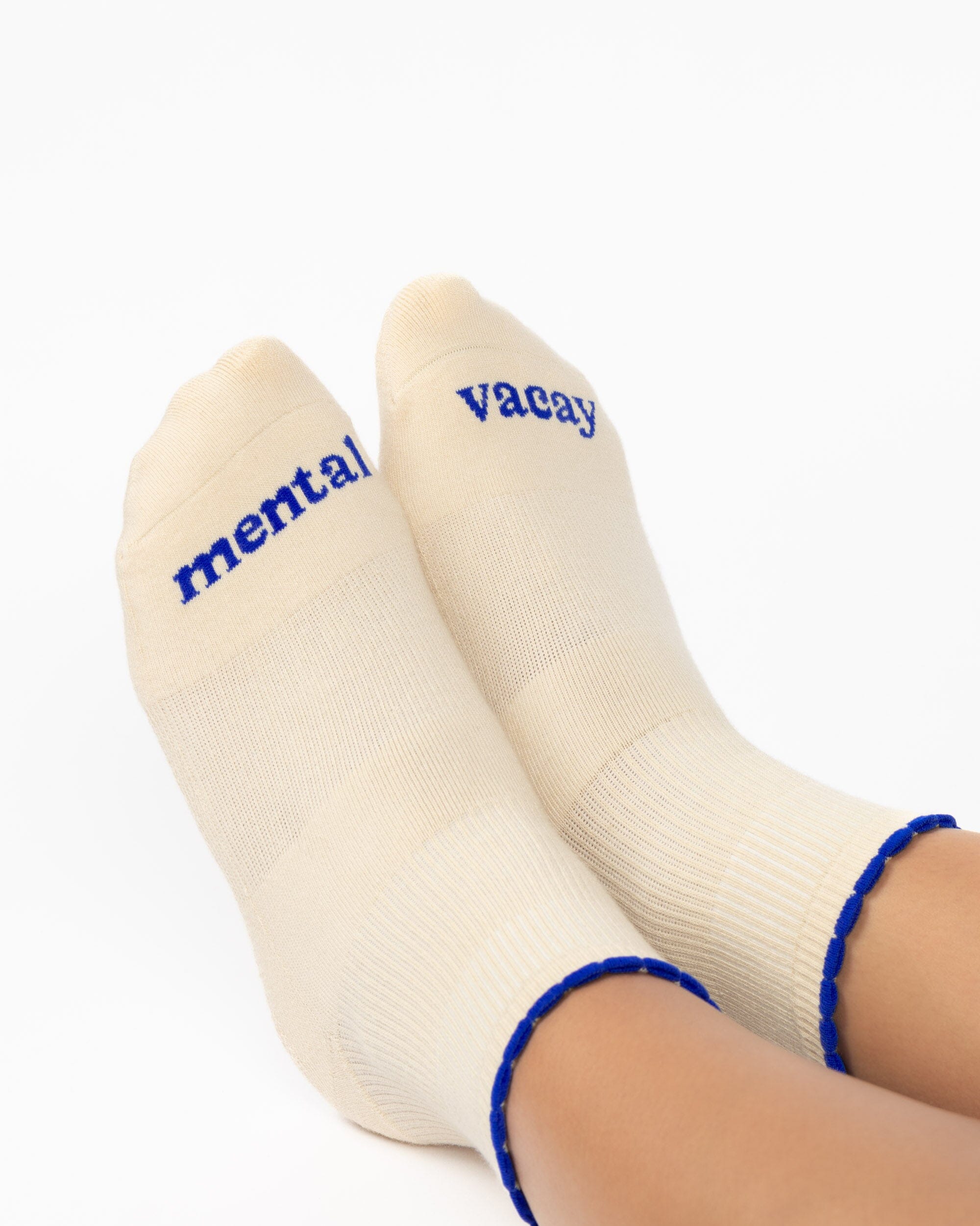The sweet ruffle detail, soothing colors, and heavenly comfort of the Mental Vcay Ankle style will have every workout feeling like a mini vacation. Featuring our no slip grip and compression arch support. A comfortable and flexible product designed for pilates, barre, and yoga but can enhance everyday life.