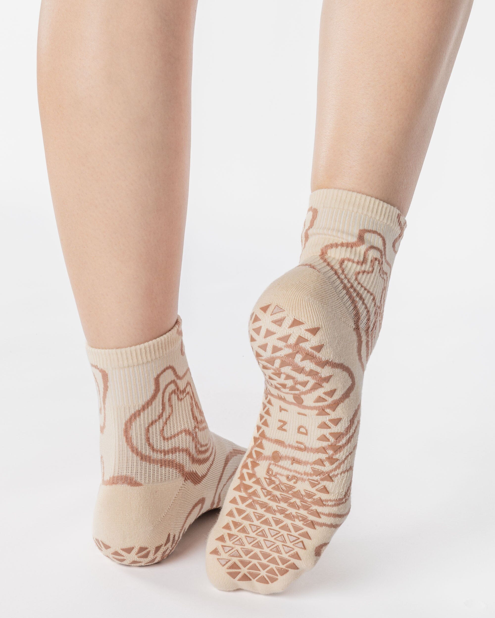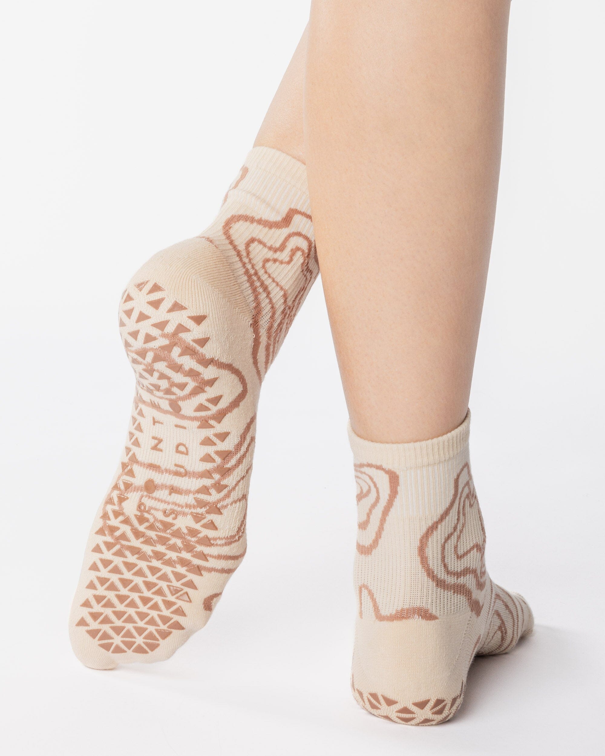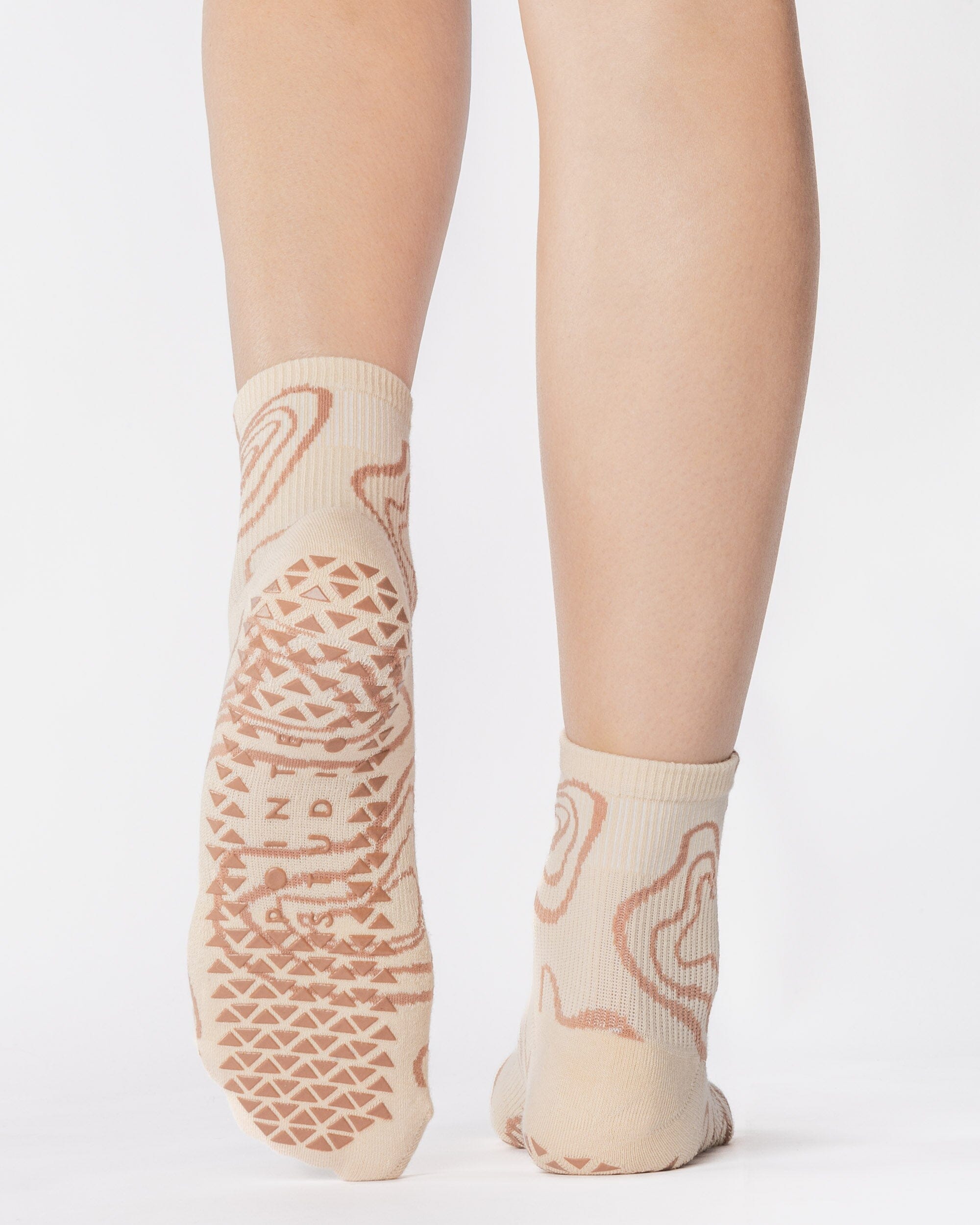 Push your boundaries with the Topo Grip Ankle. Inspired by natural landscapes, its organic, flowing lines add dimension and movement to every step. With a cushioned footbed and non-slip grip, this sock is designed to keep you grounded in your workouts and daily routines. Crafted from quality cotton, it offers breathability, moisture control, and the support you need to explore your limits in comfort.