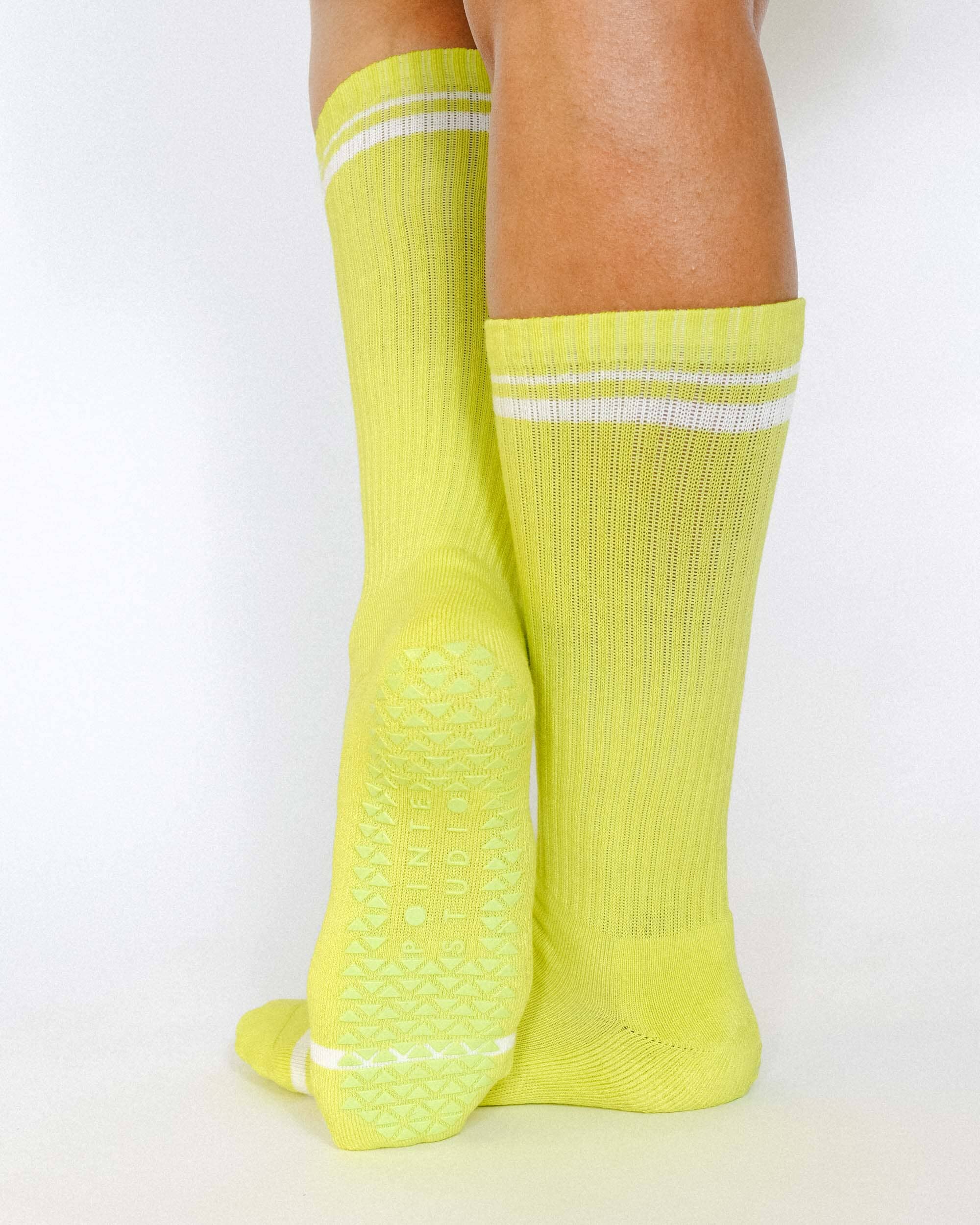 Add a little prep to your step in our Varsity crew. Featuring our no slip grip and compression arch support this style is a classic athletic look. A comfortable and flexible product designed for pilates, barre, and yoga but can enhance everyday life.