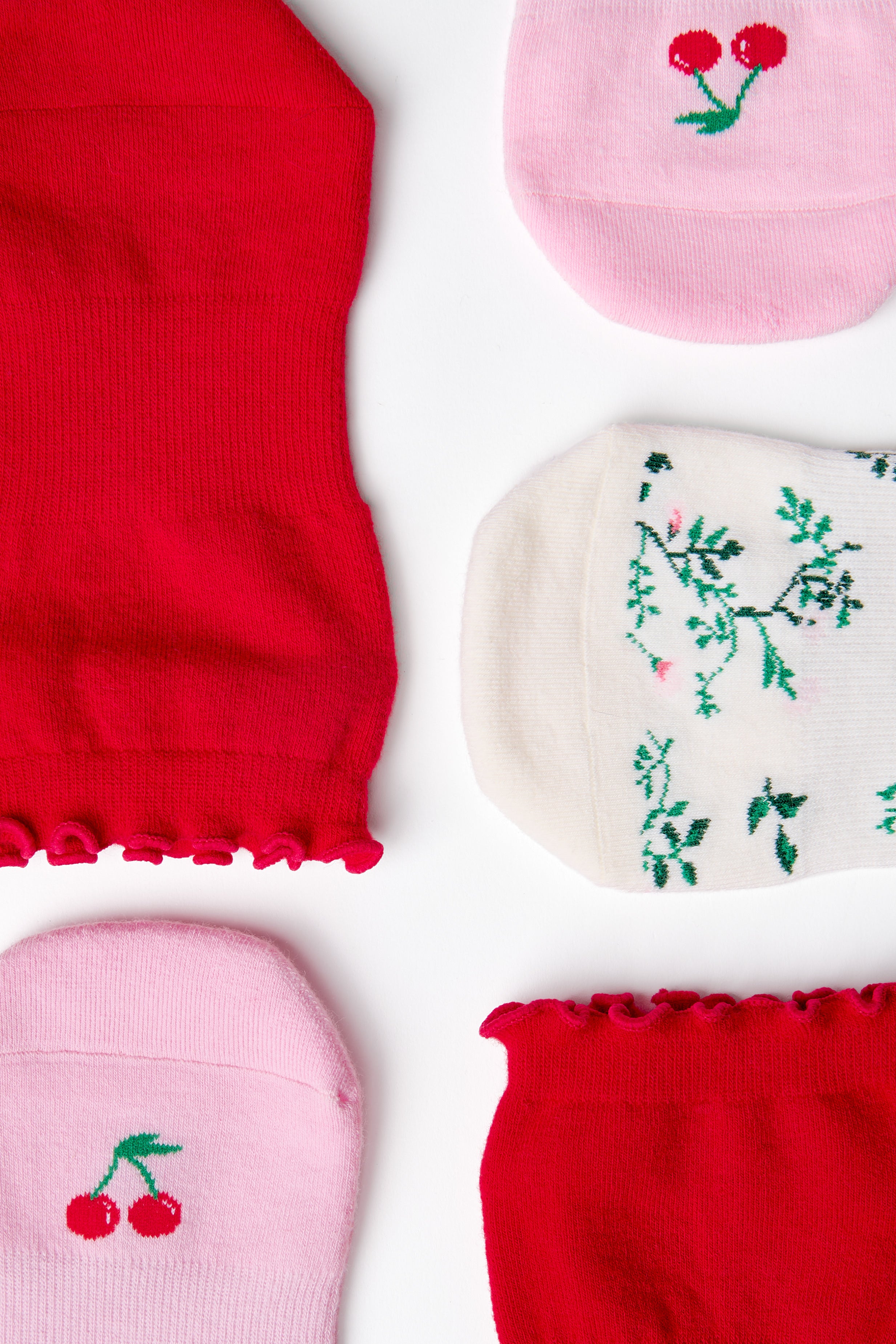 The sneak peek grip gift box includes the Cherry Full Foot, Ruffle Full Foot and Rose Garden Ankle.