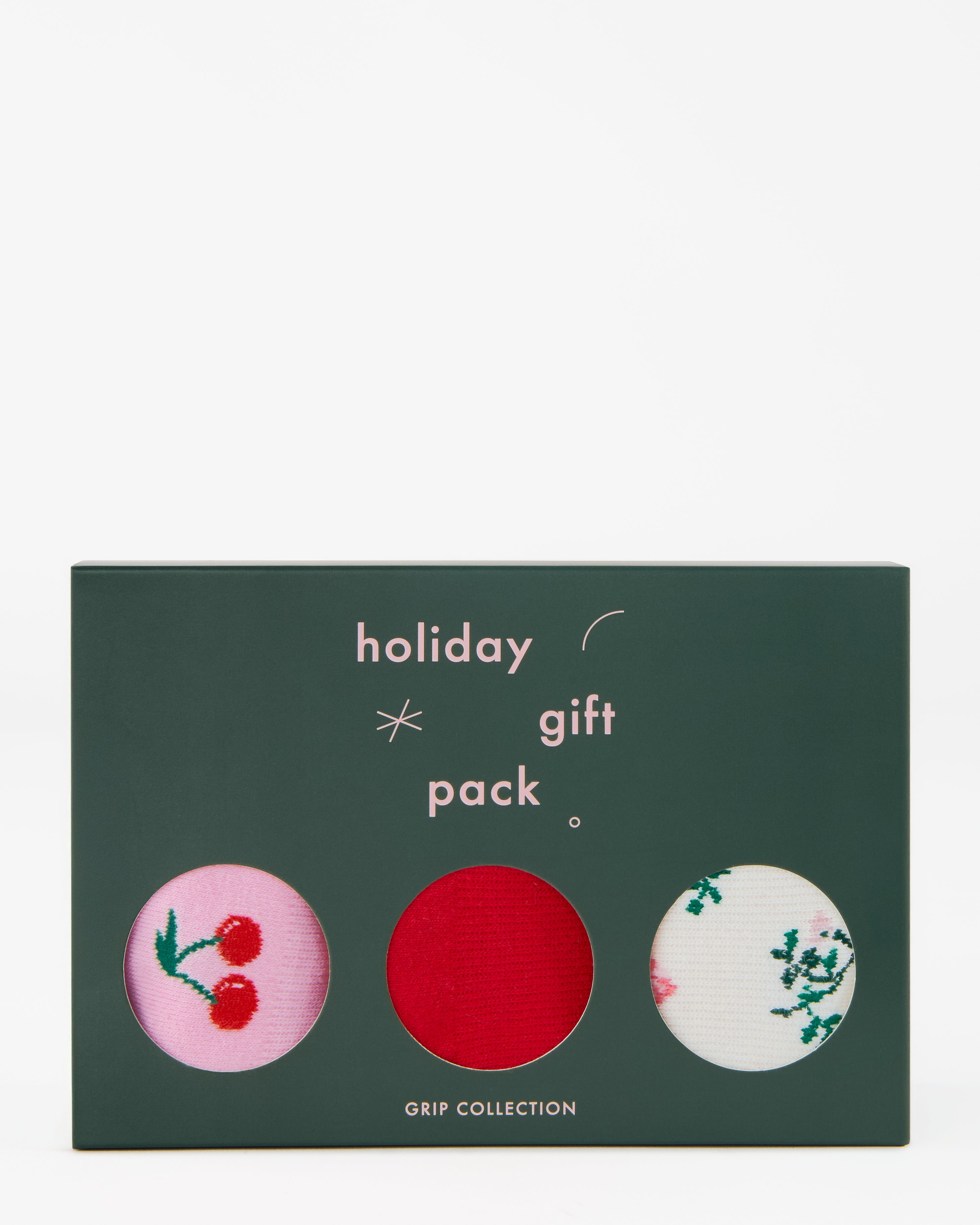 Rooted in energy, the Festive Winter Garden Gift Pack brings together Cherry, Ruffle, and Rose Garden styles in a trio of brighter hues and lively floral patterns. Designed for those who move with intention, each pair is crafted with our signature cotton blend yarns, compression arch support, and extra-hold grip—keeping your practice vibrant, grounded, and graceful through every season.