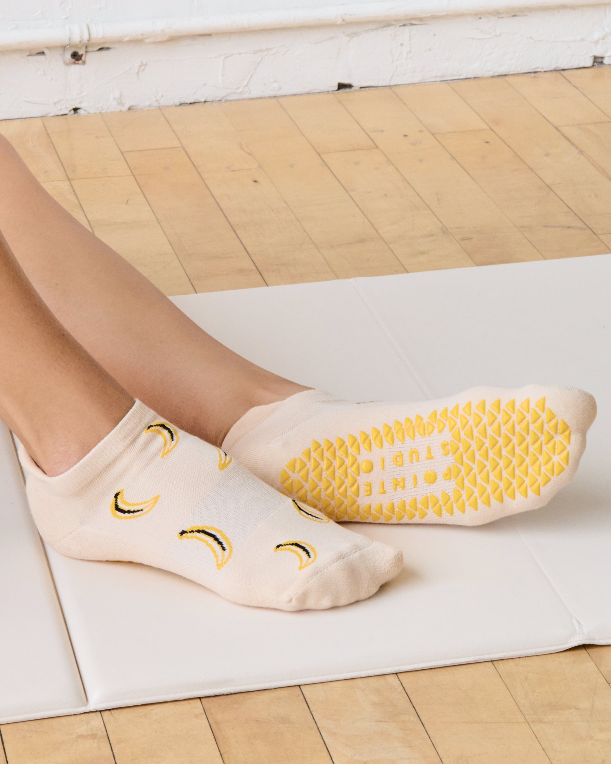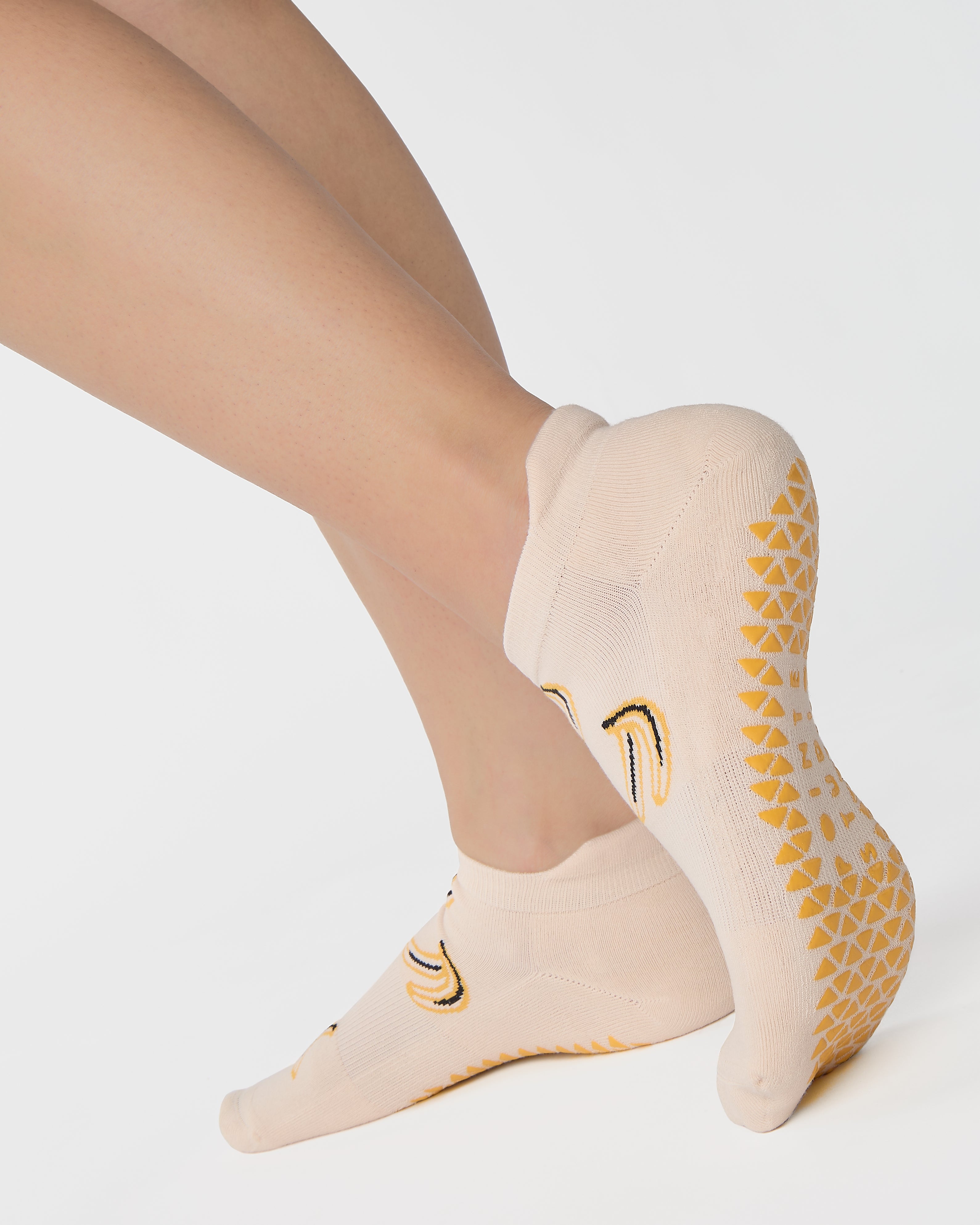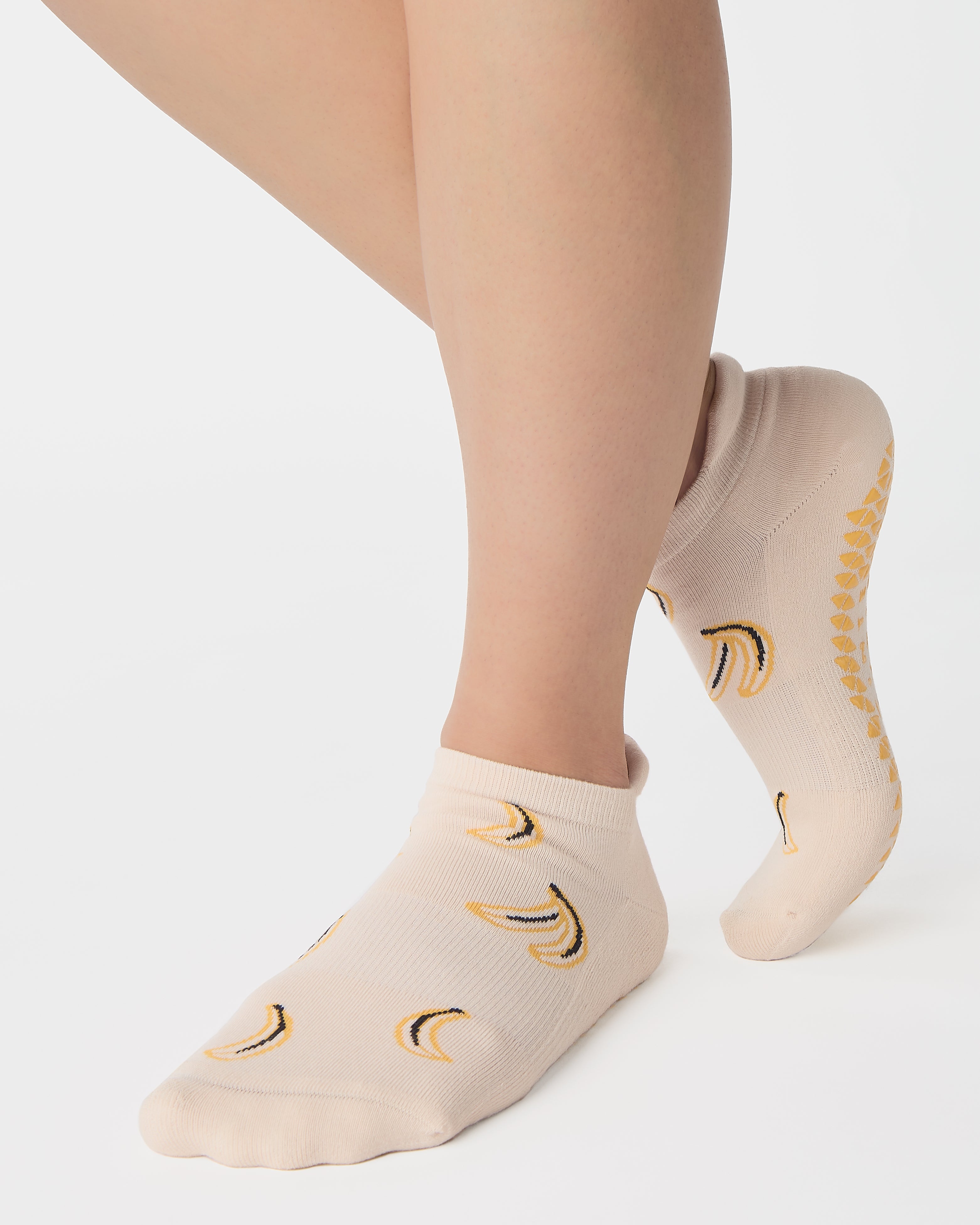 Let the energy flow in our Banana Grip Full Foot. Designed with no-slip grip, compression arch support, and a cushioned ankle rest, these socks keep you grounded and moving smoothly. Made from high-quality cotton for breathability and moisture control, they deliver comfort, confidence, and a cheerful touch of joy to every step.