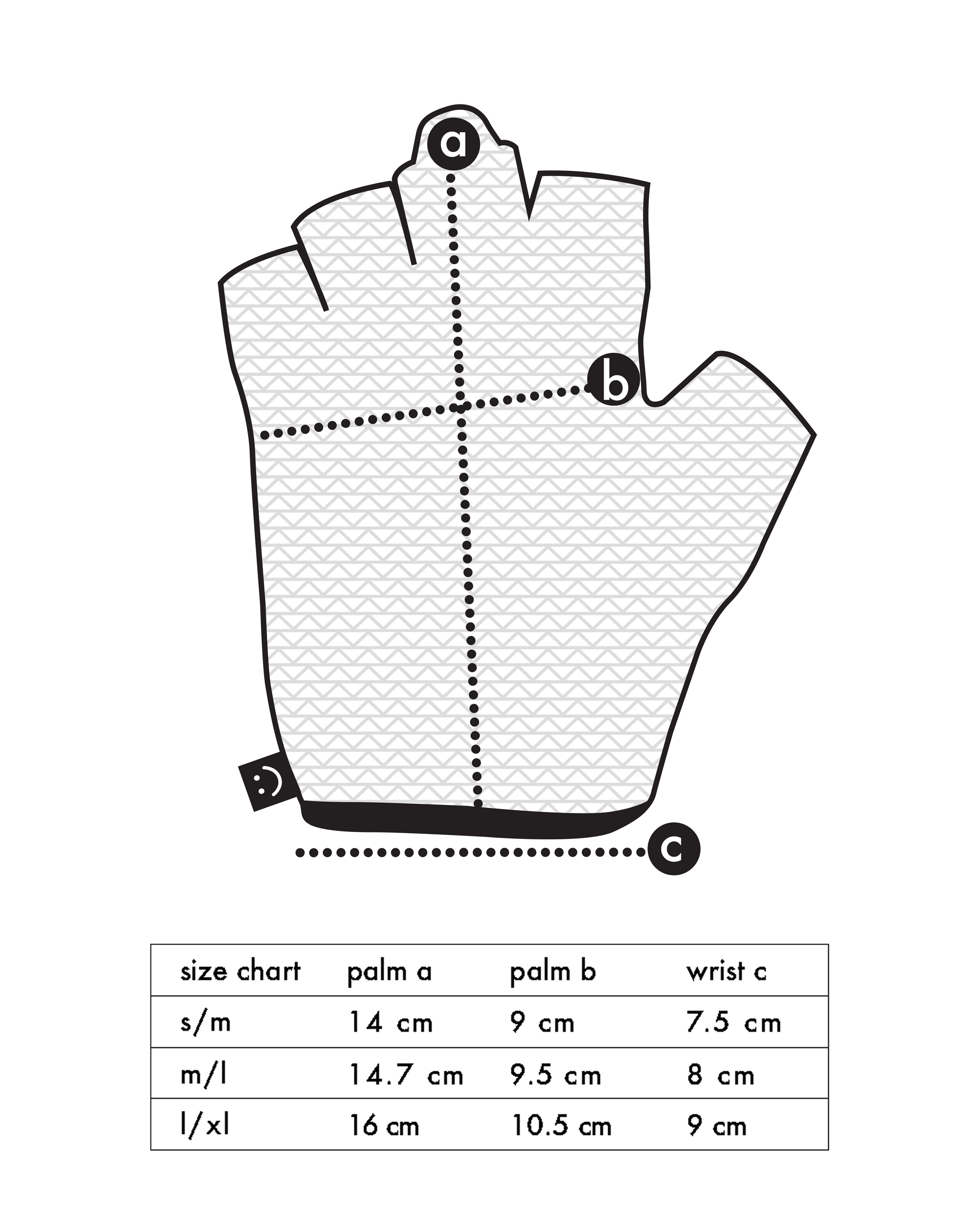 - S/M: Length 14 cm | Width 9 cm | Wrist Length 7.5 cm