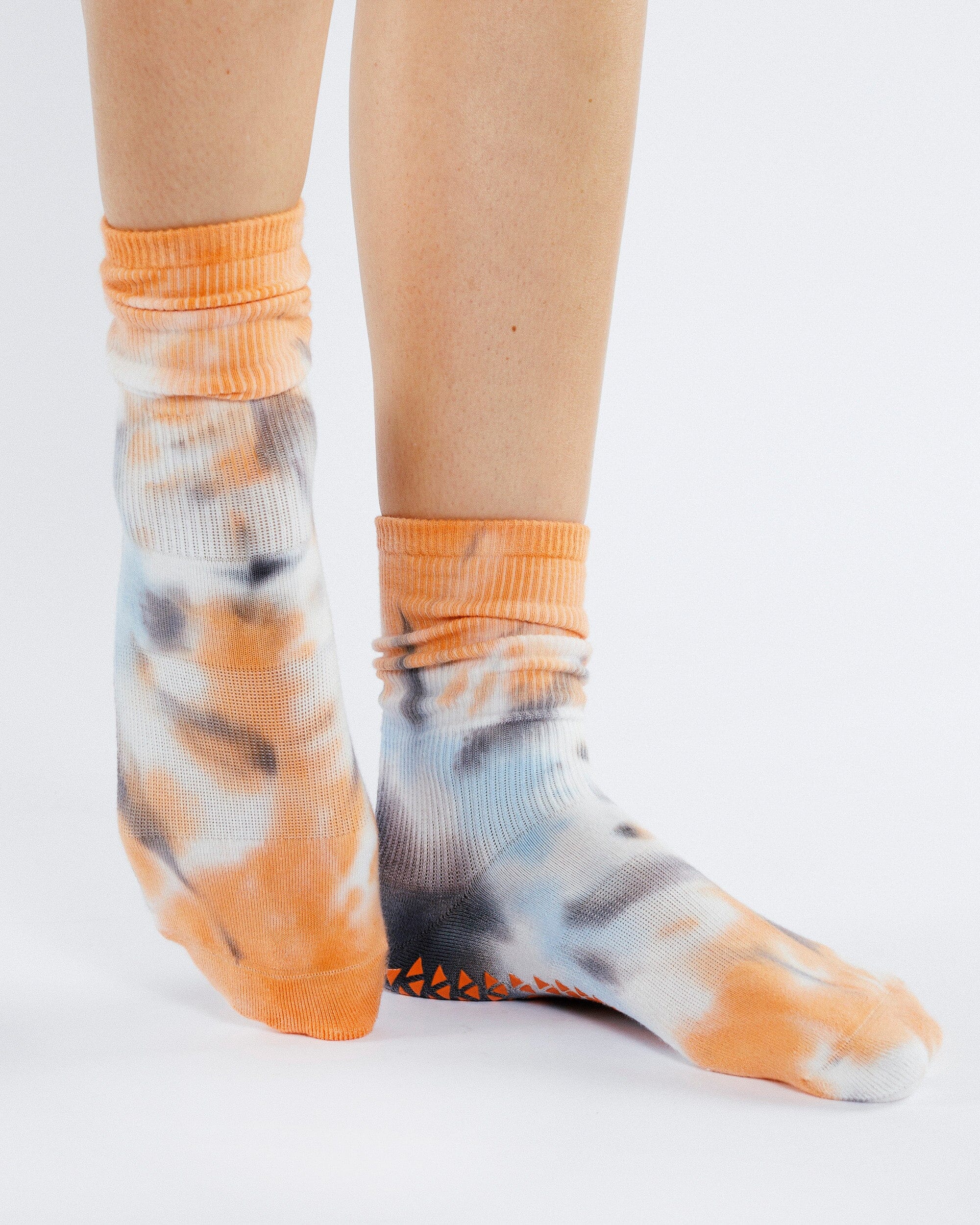 A subtle tie-dye wash and extra ankle support with our crew sock; great for barre, pilates, or yoga!