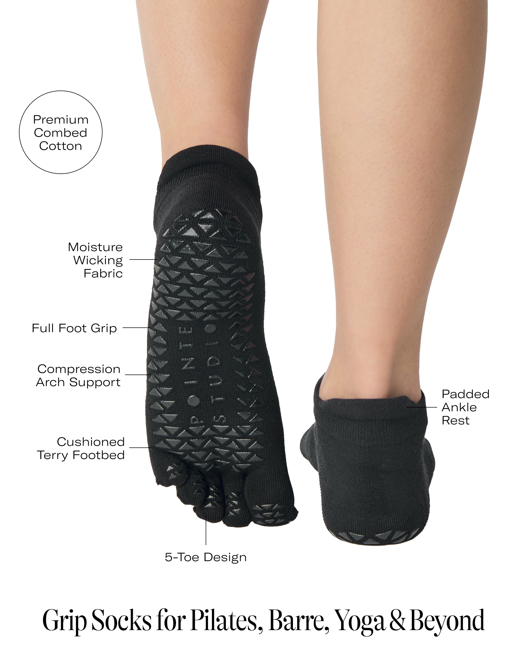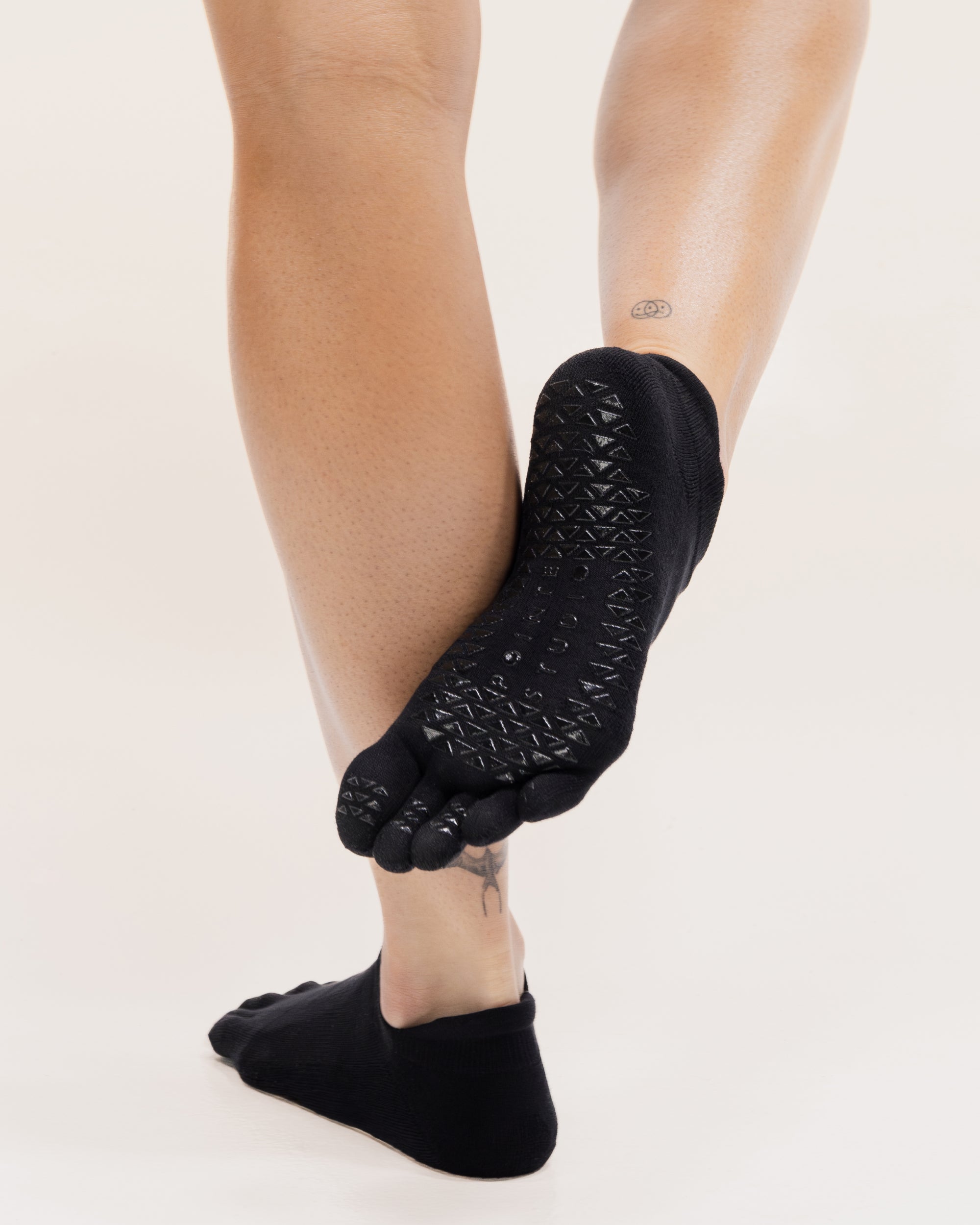 Our newest full toe silhouette is designed to take your workouts to the next level. Breathable flexibility and comfort combined with a 5-toe design that allows your toes to spread, breathe, and grip. An all-over PVC grip on the foot will keep you in place and power you through your hardest workout!