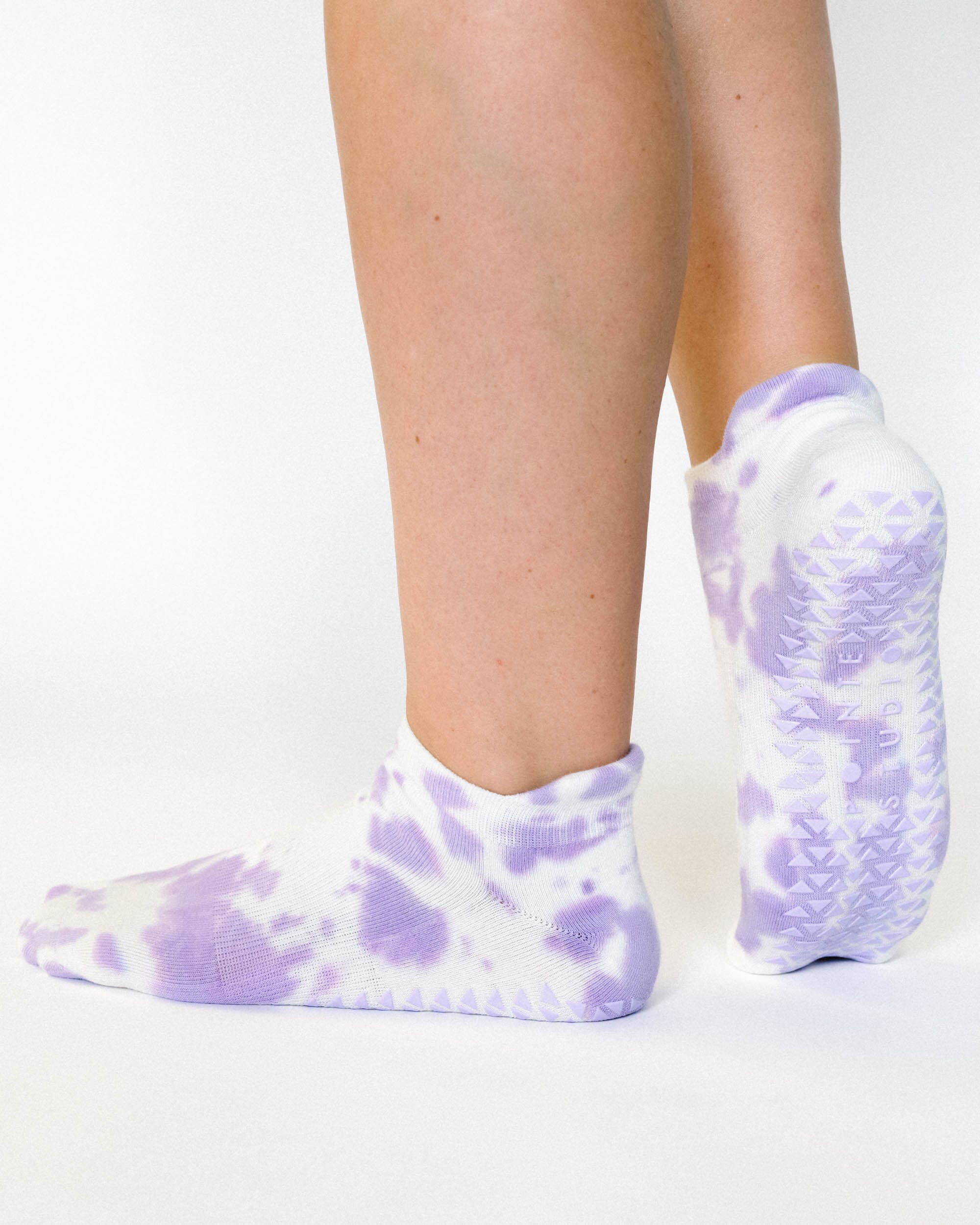 Sink into your workouts with our Dominique Grip Full Foot socks, featuring a hand-dyed wash that makes each pair one-of-a-kind. Crafted for deeper connection in your practice, they offer ultimate arch support, soft combed cotton, a padded ankle rest, and a no-slip grip to enhance every move in the studio.